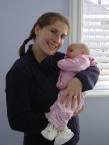 While we were out and about mum took me out for lunch and then shopping. Fabulous…I loved it! I got two new pairs of pants and some new bunny-shaped shoes. Mum was worried about my feet getting cold hanging out of the baby bjorn but you don’t need an excuse to buy shoes I say! Check them out in the piccie….they’re pretty cool π
