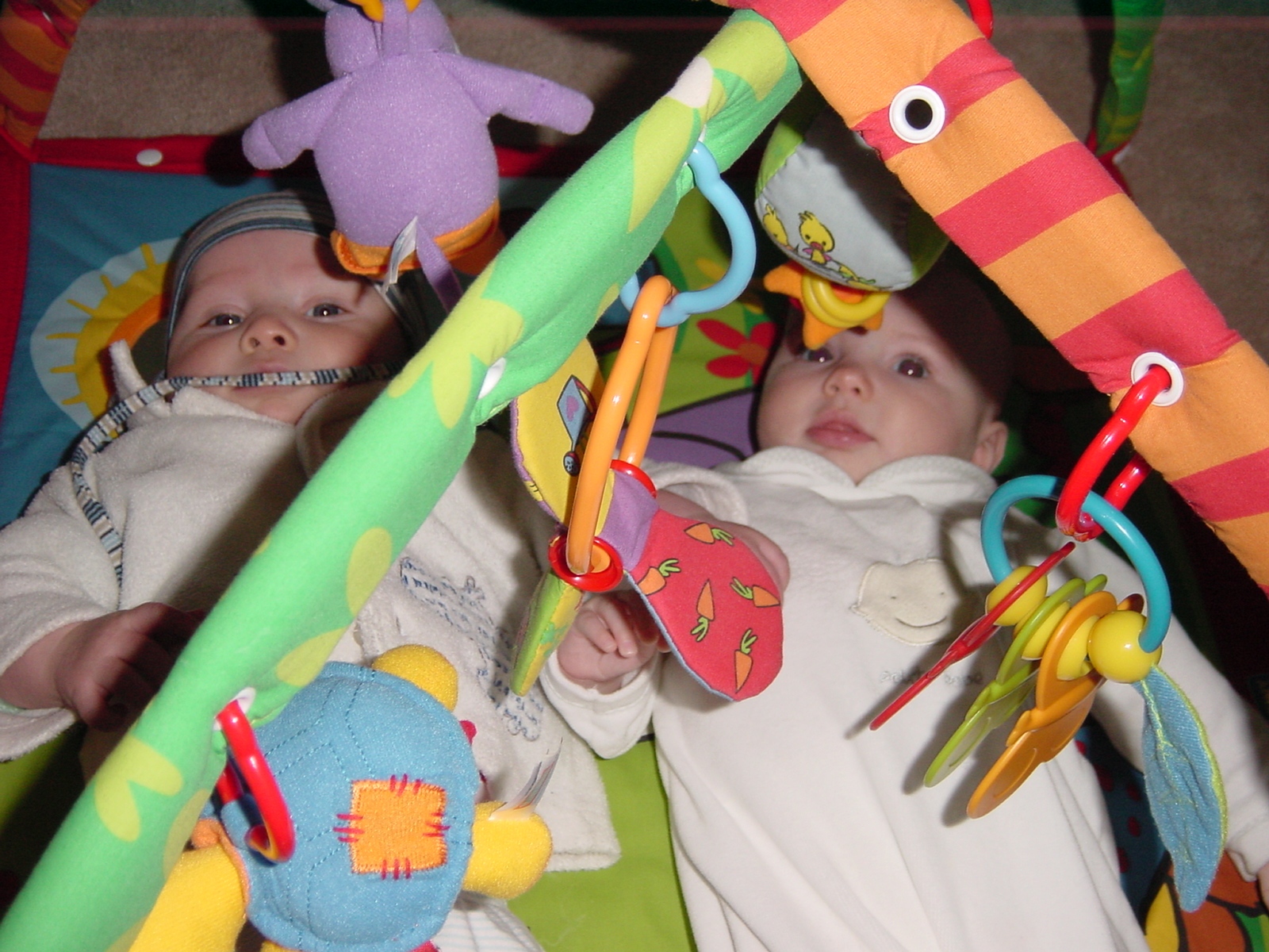 Harvey and Griet (my twin friends from down the street) popped around the other night for a visit. Just like his Dad, Harvey went straight into the gym. Griet decided to take a tour of our house with the folks while I stayed to spot Harvey as he explored the new apparatus.