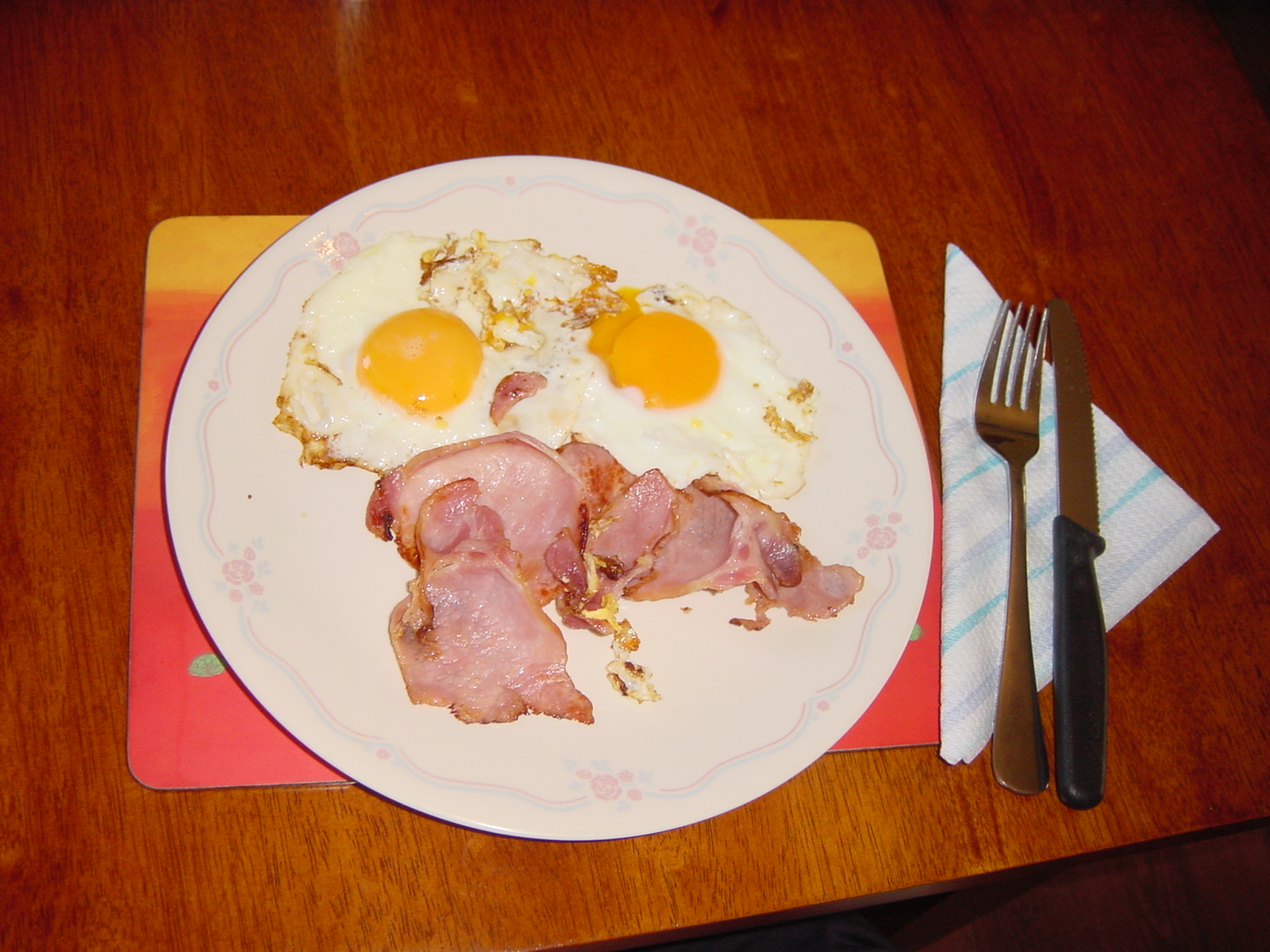 Mum gave me a piece of bacon midway. She was trying to see whether I preferred sweet or savoury foods. So I confused her. I put the bacon in my egg and kept eating them both! If you look closedly you can see it below.