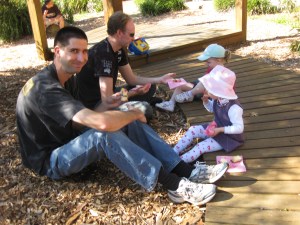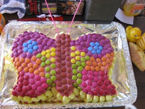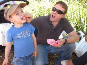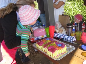 On Saturday mum, dad & Lachie had a birthday party for me and I had the best time ever! We went to Muston Park with some of our family and my play friends. The weather was perfect and we had super company! The food was yummy too…Dad didn’t even stop me went I went back for my third mini-croissant! AND I had a cool butterfly cake. Mum and Dad considered attempting to do a Dora cake but as they were making it on the morning of the party they decided on the safer option of a butterfly 🙂