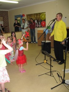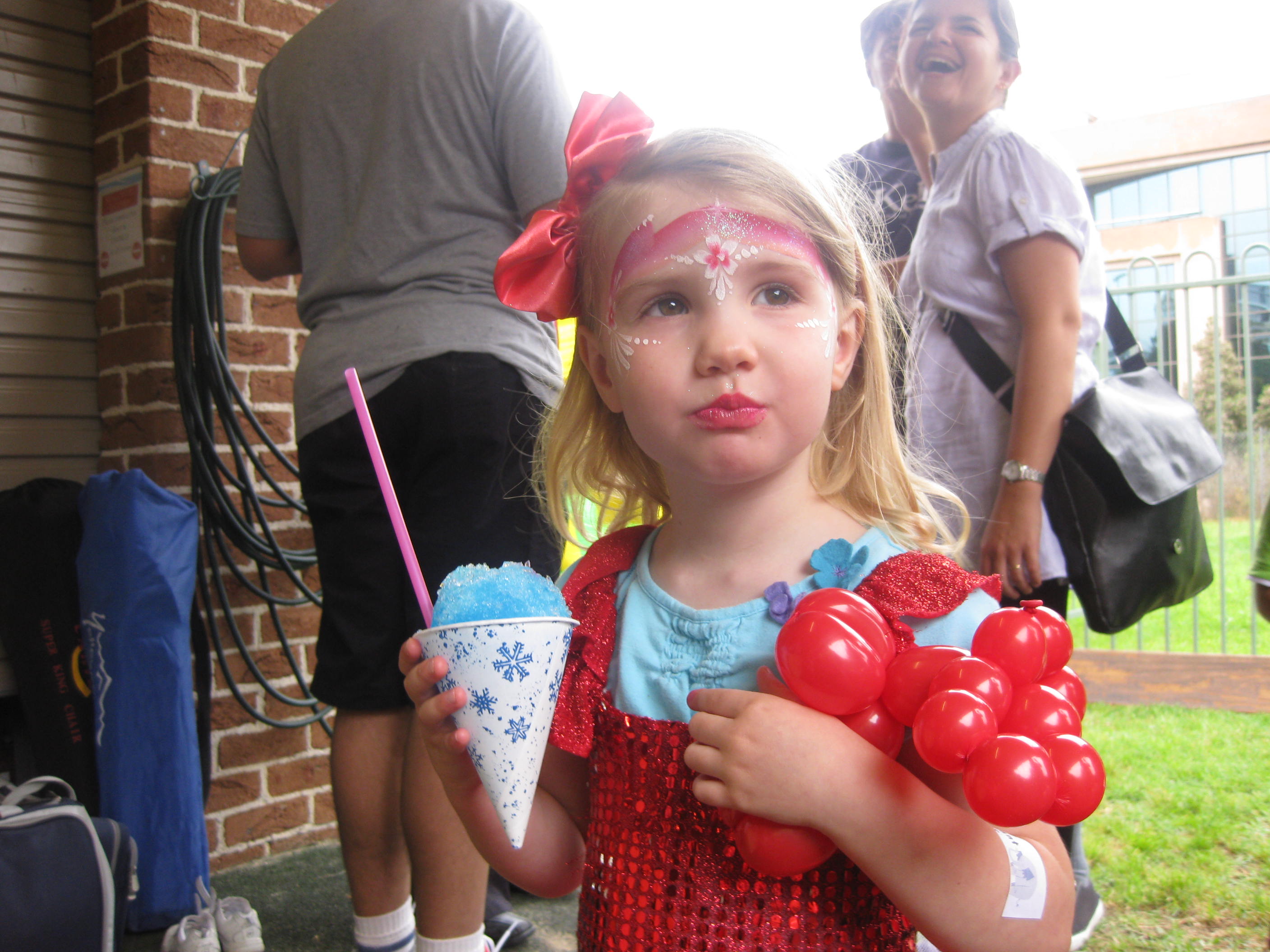 It had face-paint, snow-cones, balloons, a Wiggles cover band – what more could a party girl ask for? Check out the piccies…including the one of me in the front row rocking the band!