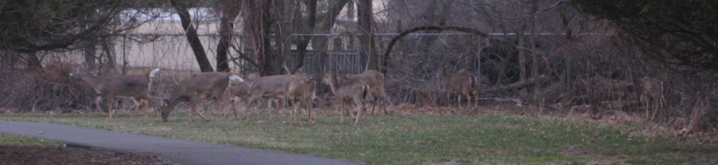 (like a “bear hunt” – where you track the deers down for viewing purposes only. Luckily in our back yard and around the J&J campus, this is very easy. We usually see this clique of deers a few times a week).