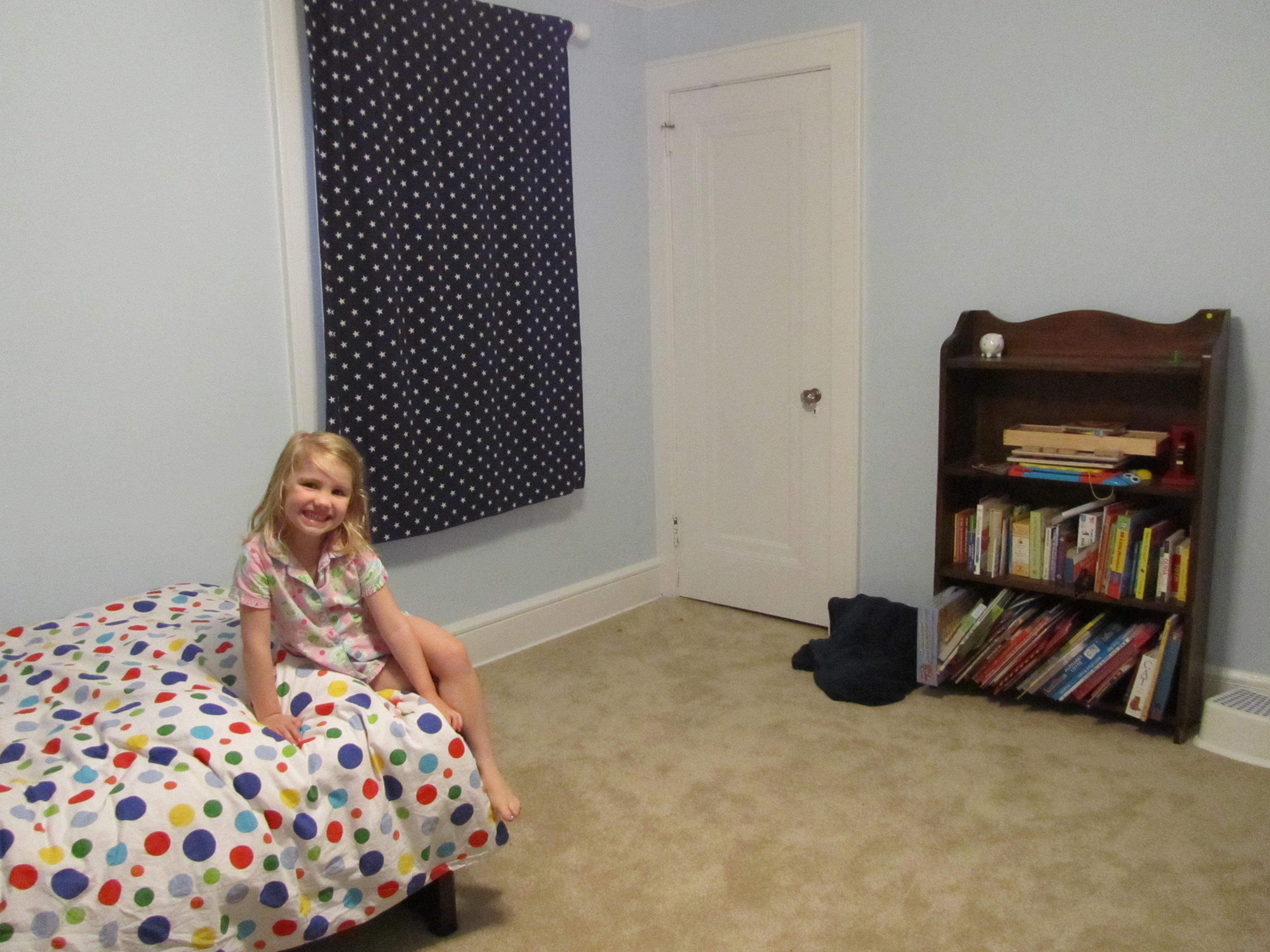 Here are the before – middle – and then after shots of Eli’s room…it’s very Fancy Nancy π