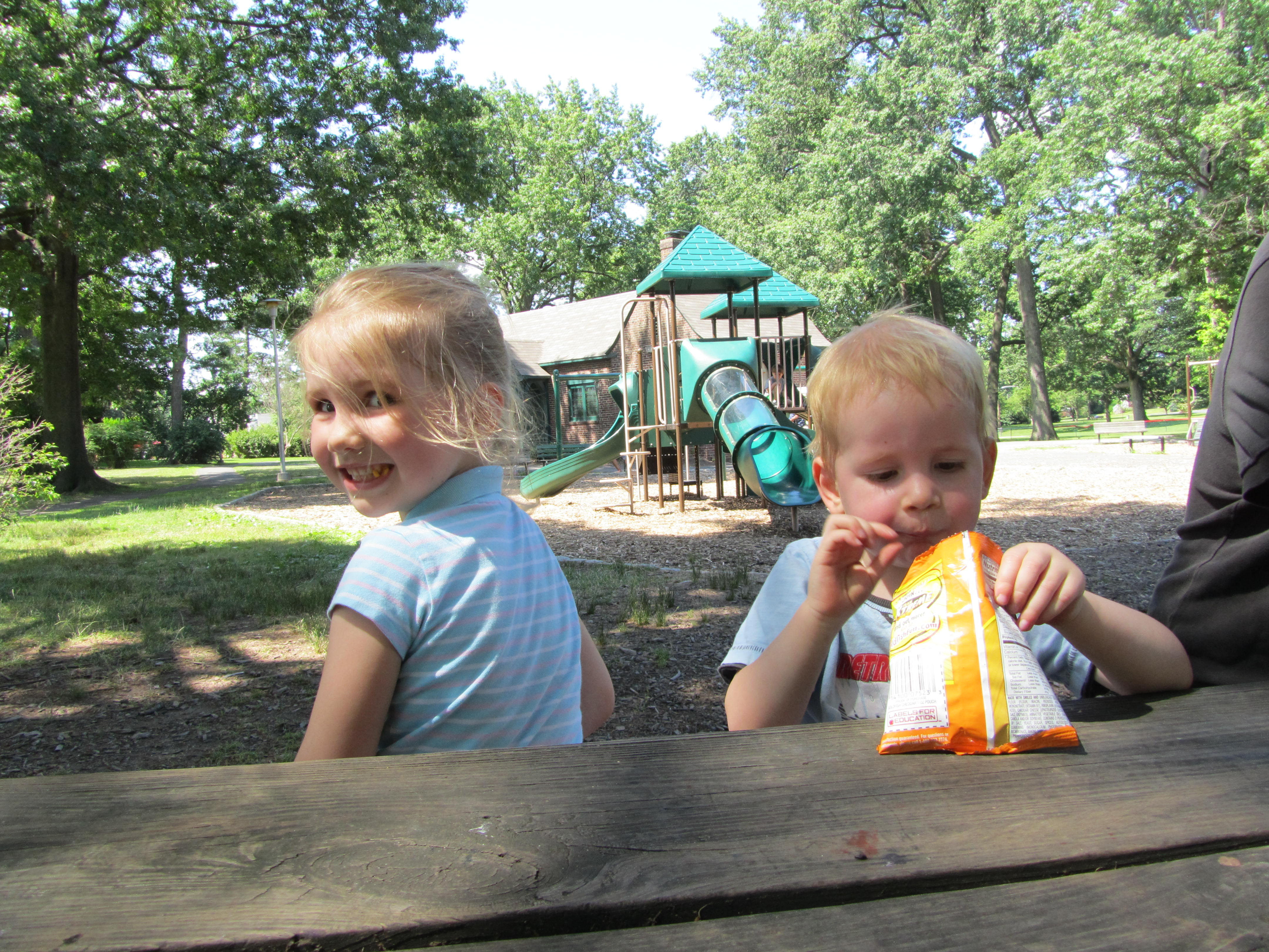We stopped for a play at a local park on the way home. This one is at the other end of our street to the park that we usually go to. We are so lucky to have a cool park at eache end 🙂