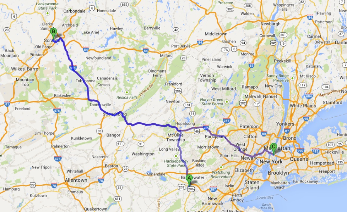 After work, straight from the office, our first night was at Scranton, Pennsylvannia.