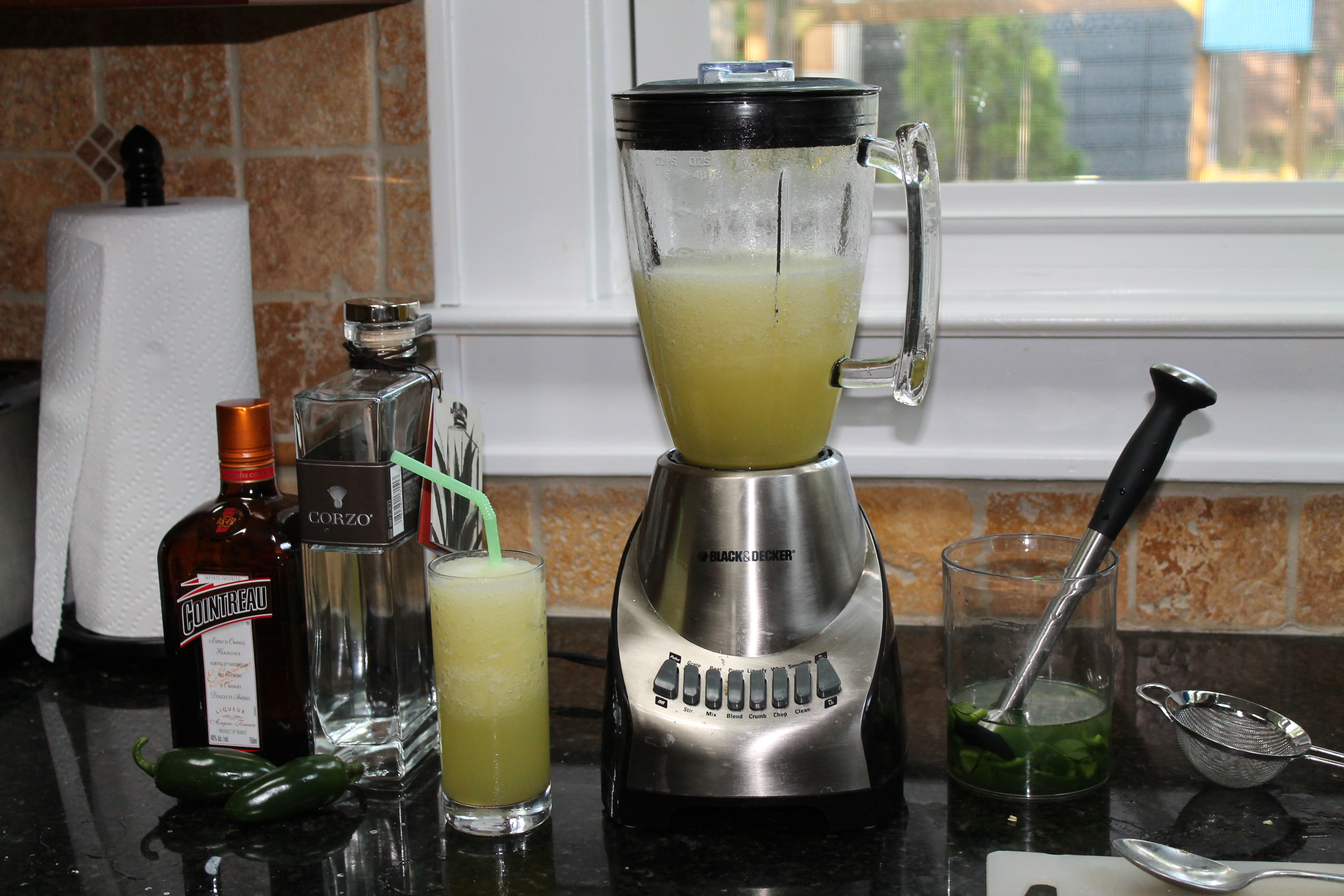 After gaining inspiration from the Flatiron Room (and their Matador cocktail) when Andrew was here, we decided to infuse some tequila with Jalepenos – yum!