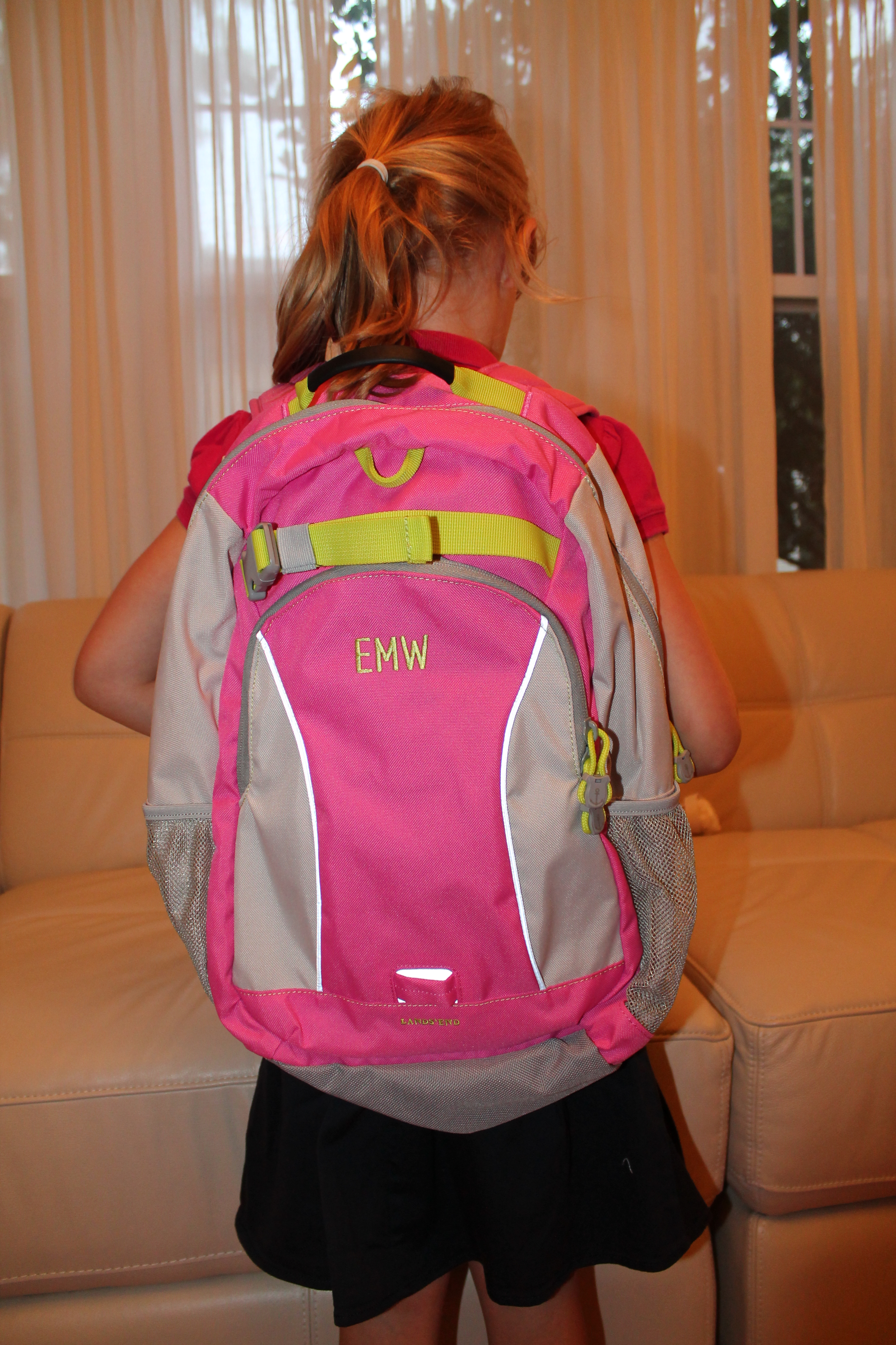 Trying on my new backpack for big school. I’m ready for first grade – I can fit anything in this!