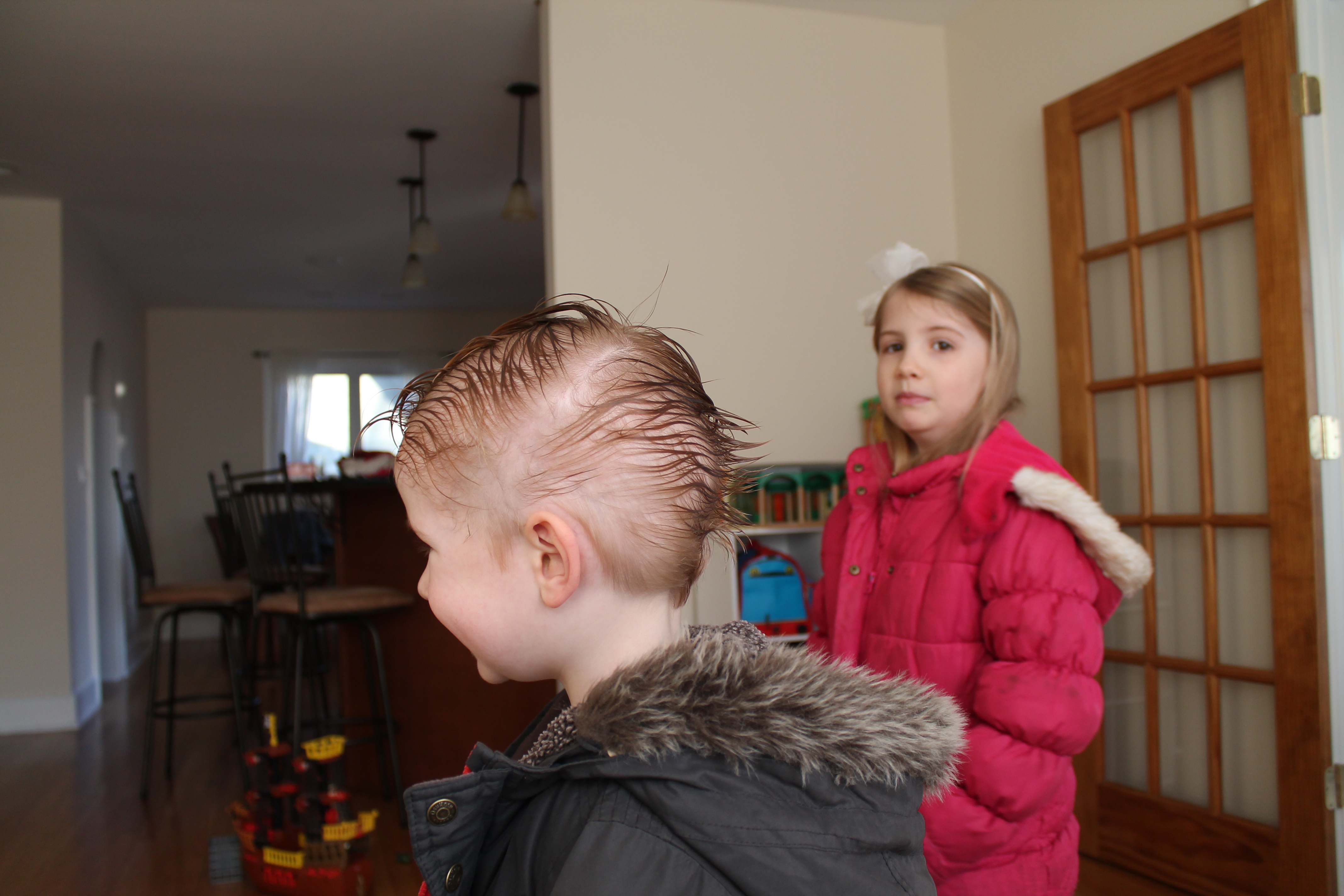 Wet, comb and gel – eek! This is Lachie’s new look…