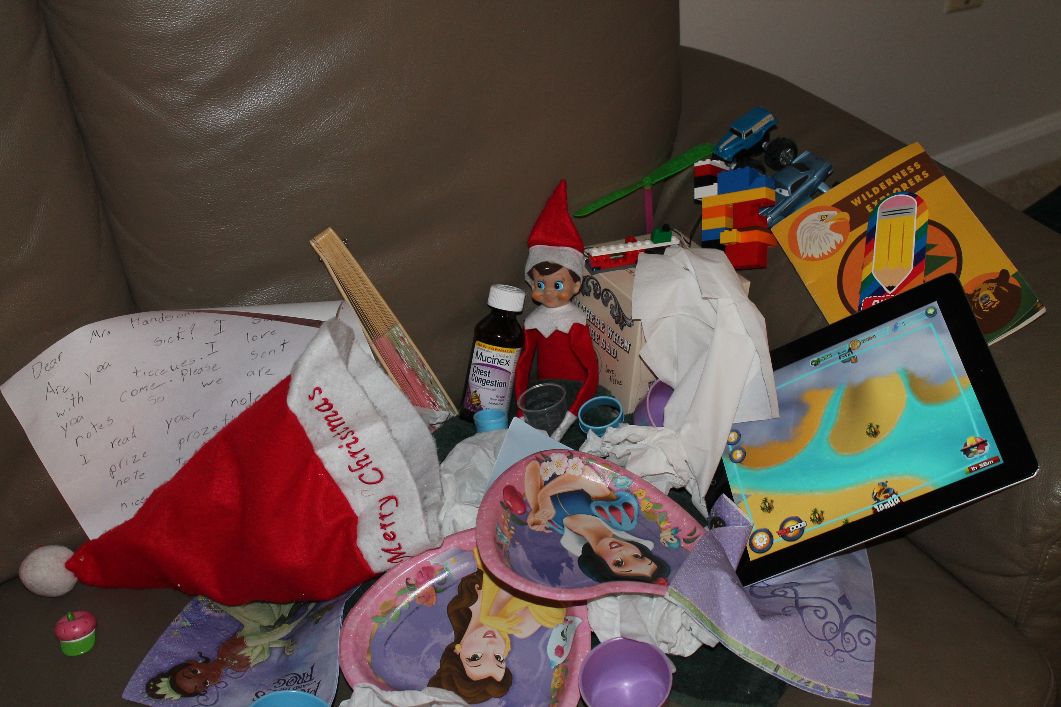 Poor elfie was sick… and so we read him stories.