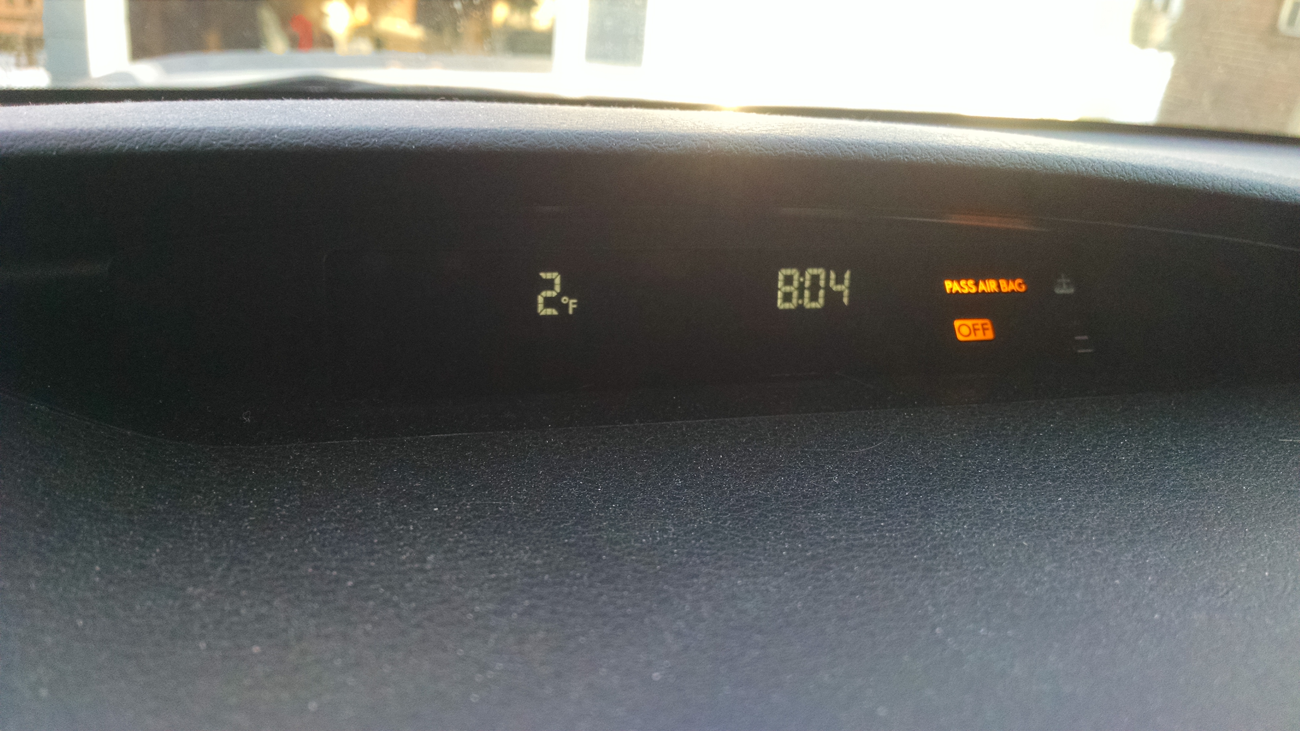 2 degrees Fahrenheit on the car thermometer.