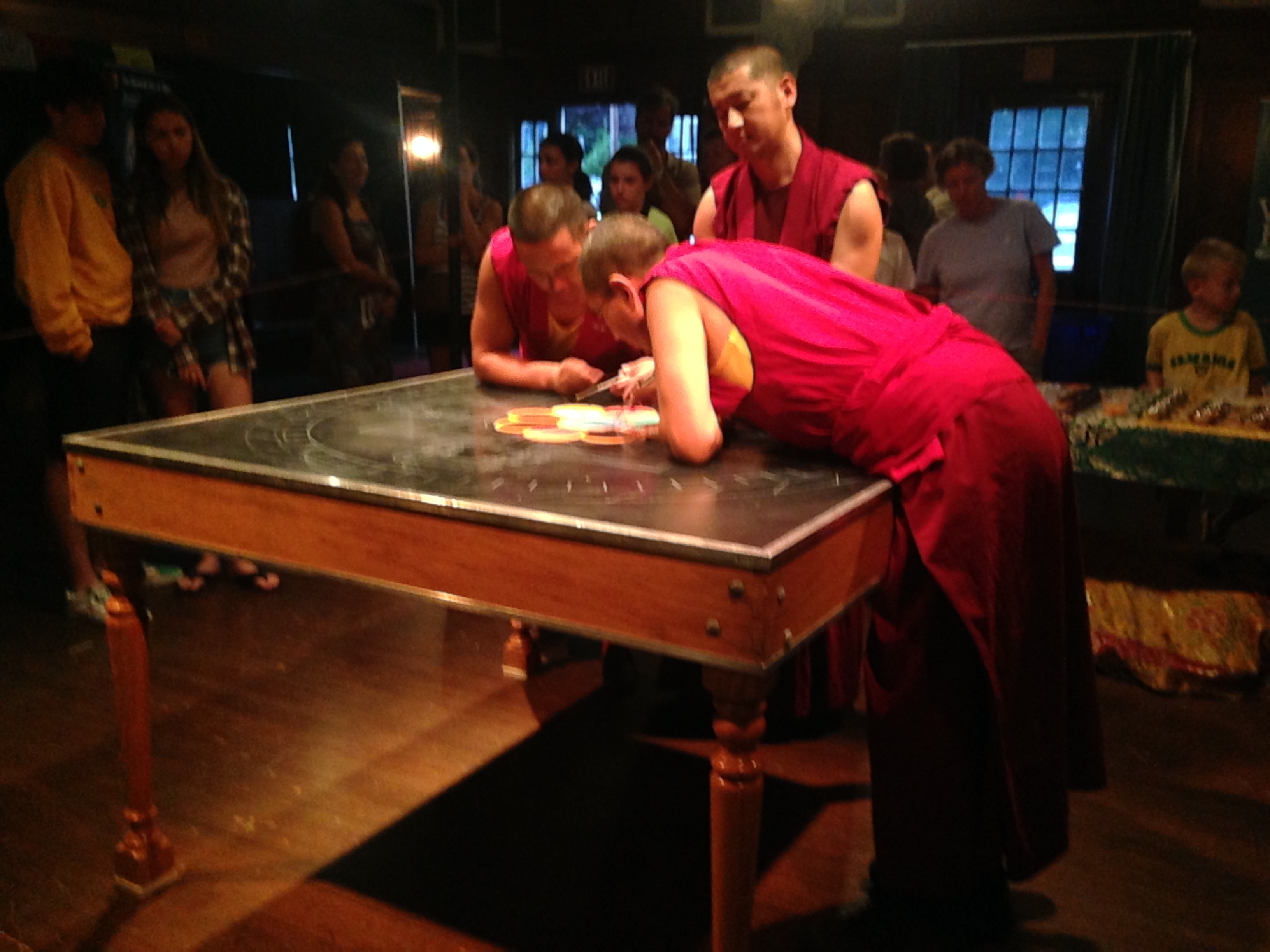 Maplewood has invited a group of five Buddist monks from the Drepung Loseling Monestry in Tibet, to come the local community hall for the Mandala project – to build a sand art (masterpiece!) grain-by-grain over the coming week. Today we went to see Day 1 – the start of the project…