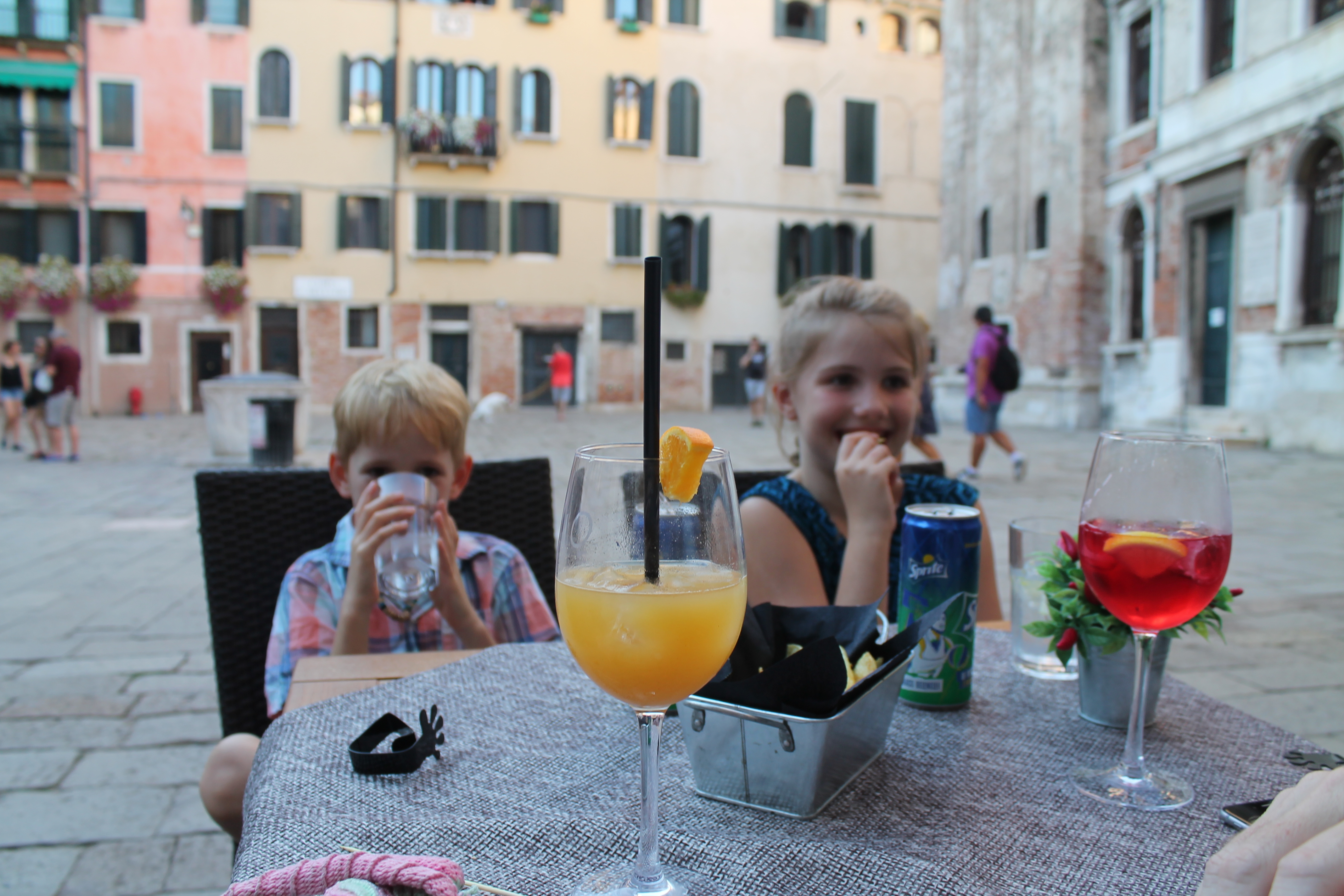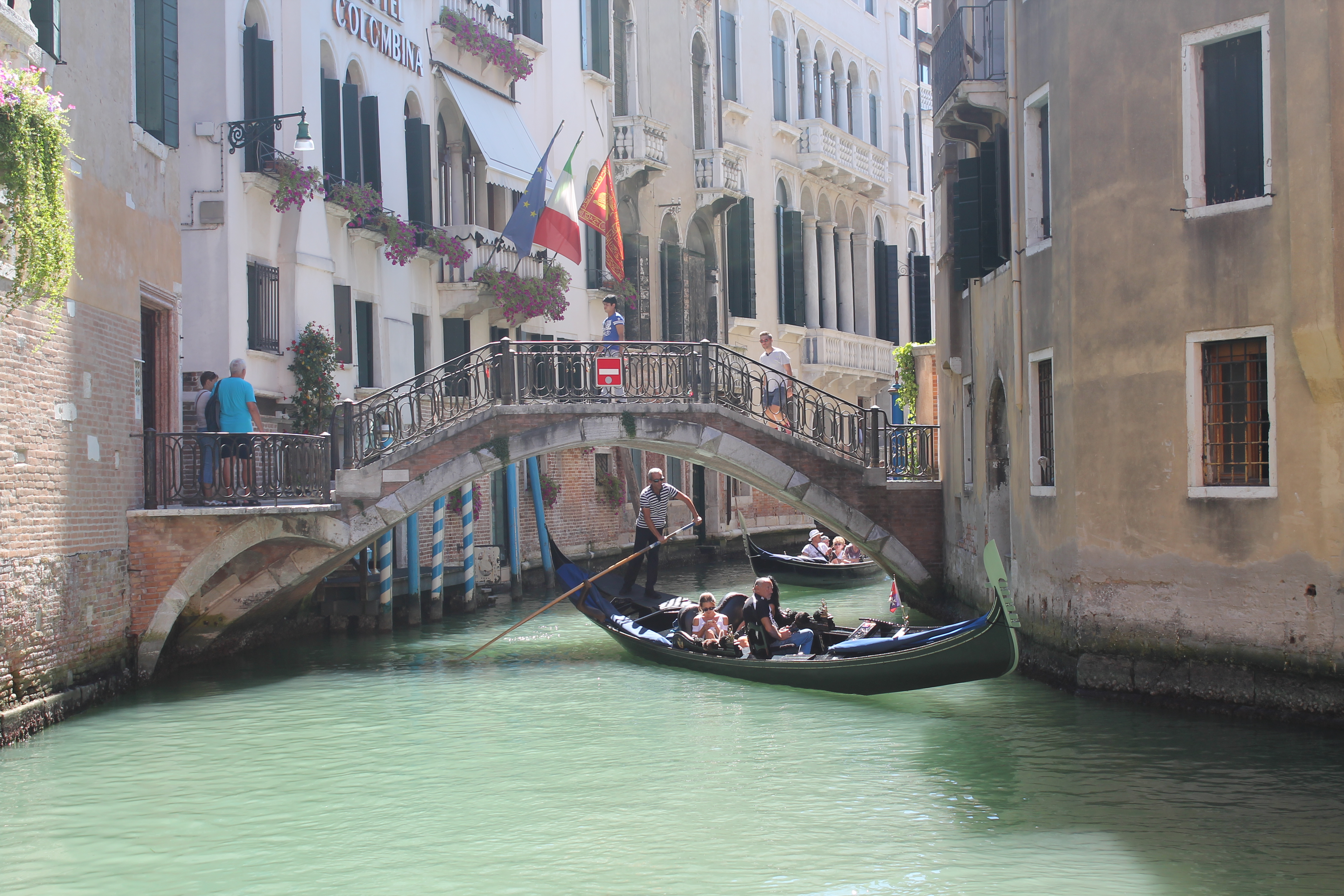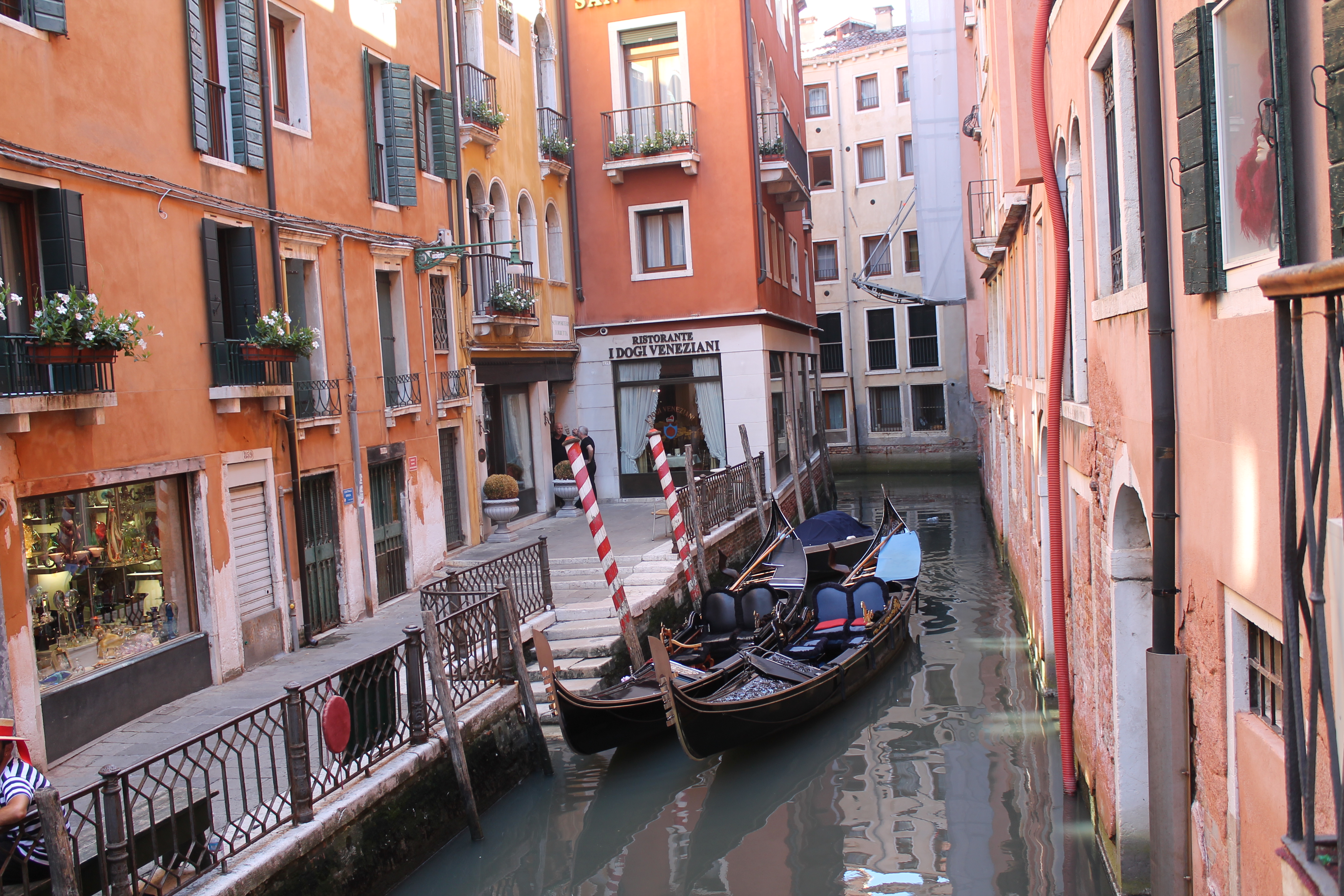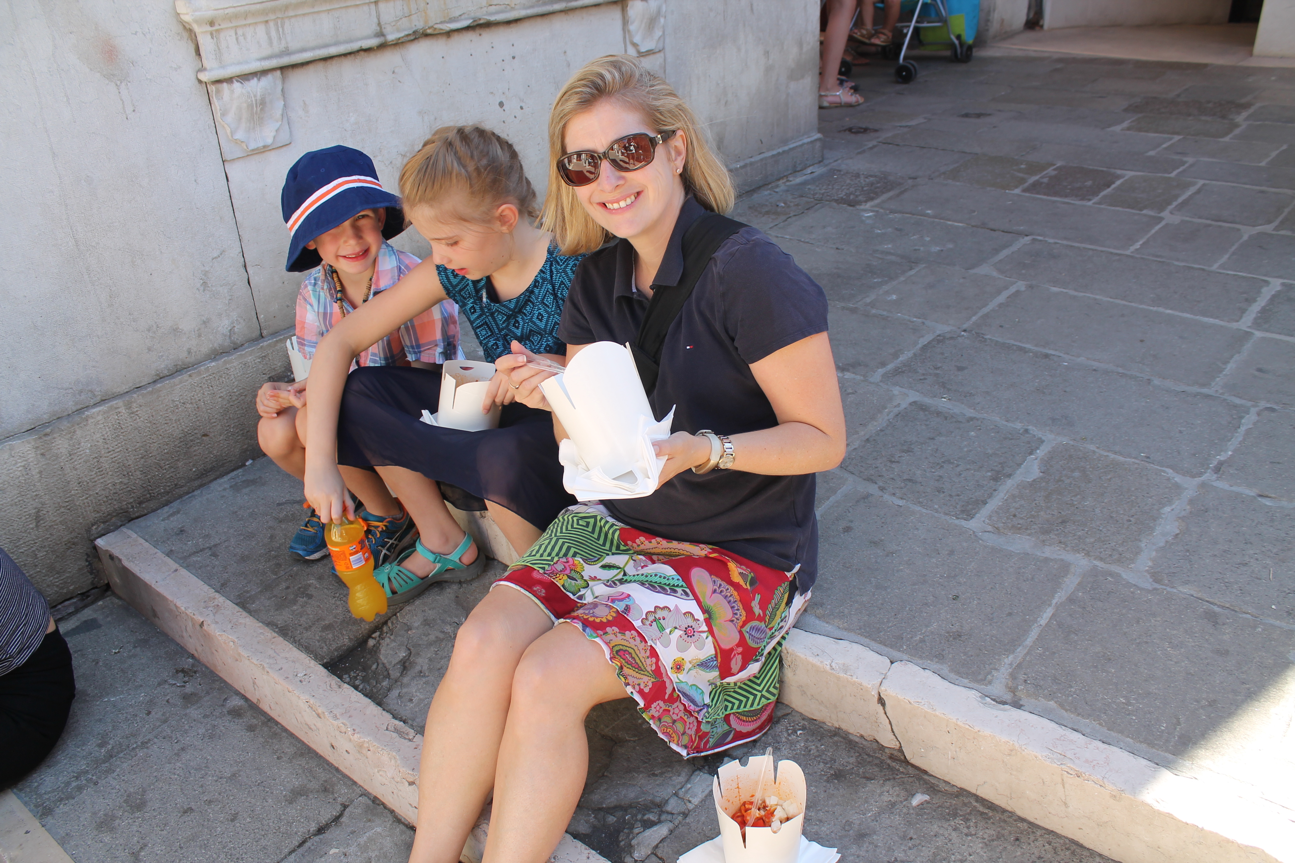 Before lunch – a home made take away pasta eaten on a tiny bridge watching the Gondolas gracefully glide by. We’re in Venice!