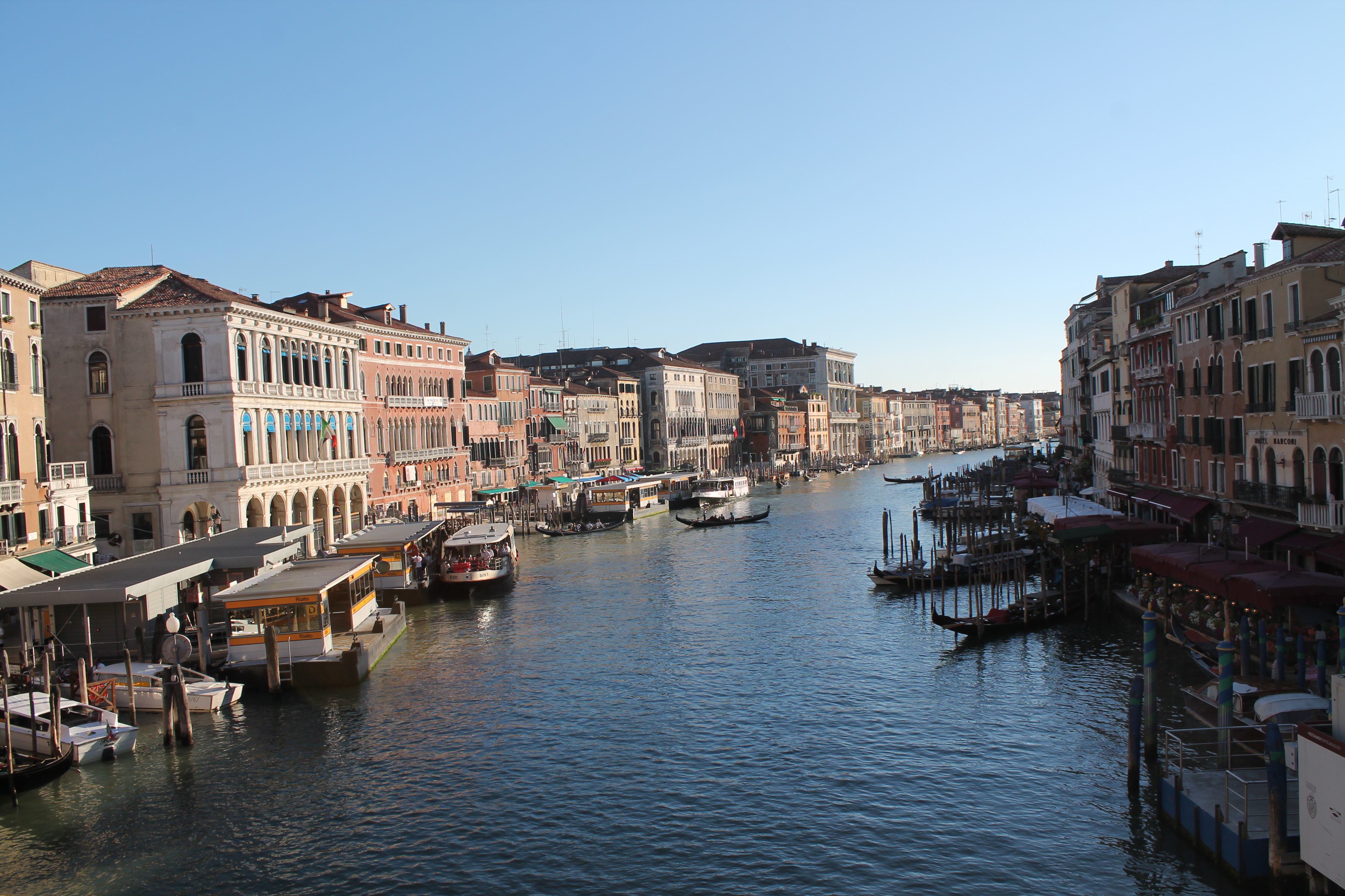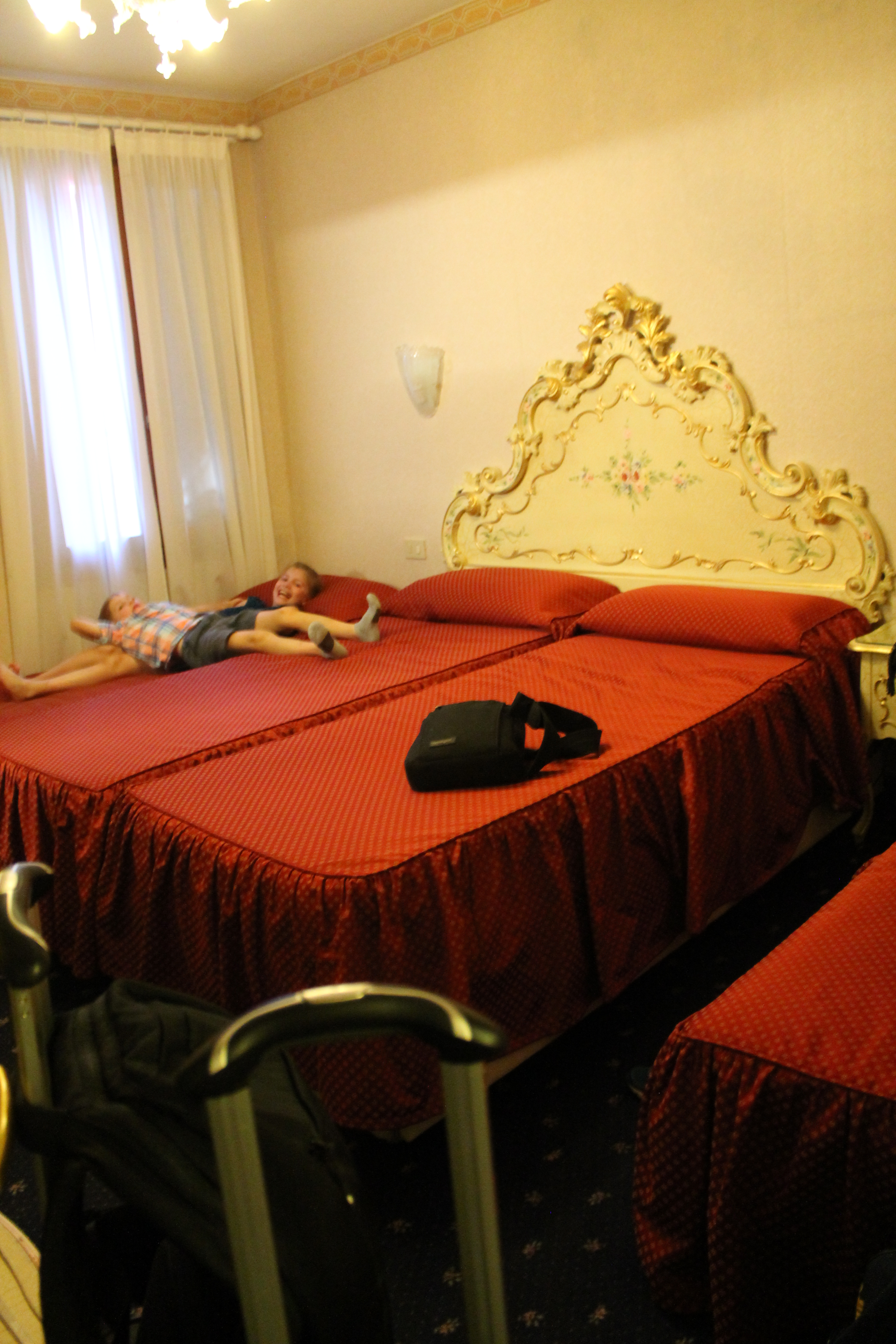 This morning we caught an early fast train from Florence to Venice, then a Vaporetto to the Rialto Bridge. There it was a short walk to our hotel to drop our bags (the room was teeny-tiny!)