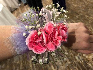 Unfortunately I had a sore foot still (no brace though!) and the shoes let the outfit down. Luckily I’d ordered a corsage when I bought the tickets to balance the outfit???