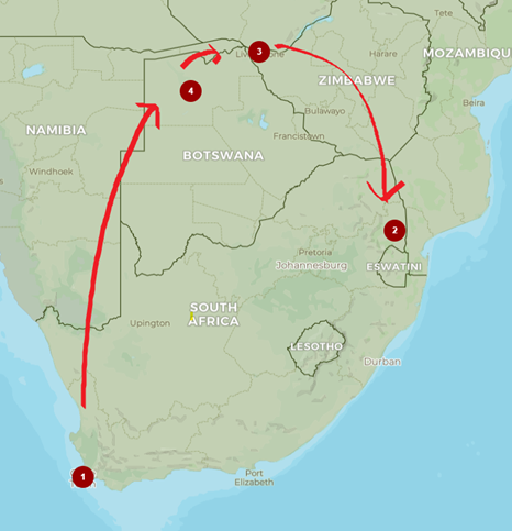 We’re off! Southern Africa here we come! Here is our rough plan: